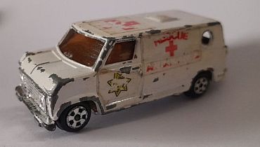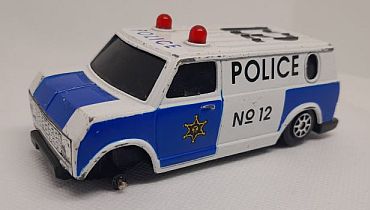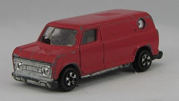 Dinky made a larger scale model van which is a close likeness to a CF Bedford van. The body is diecast with a tin base and under sized wheels.